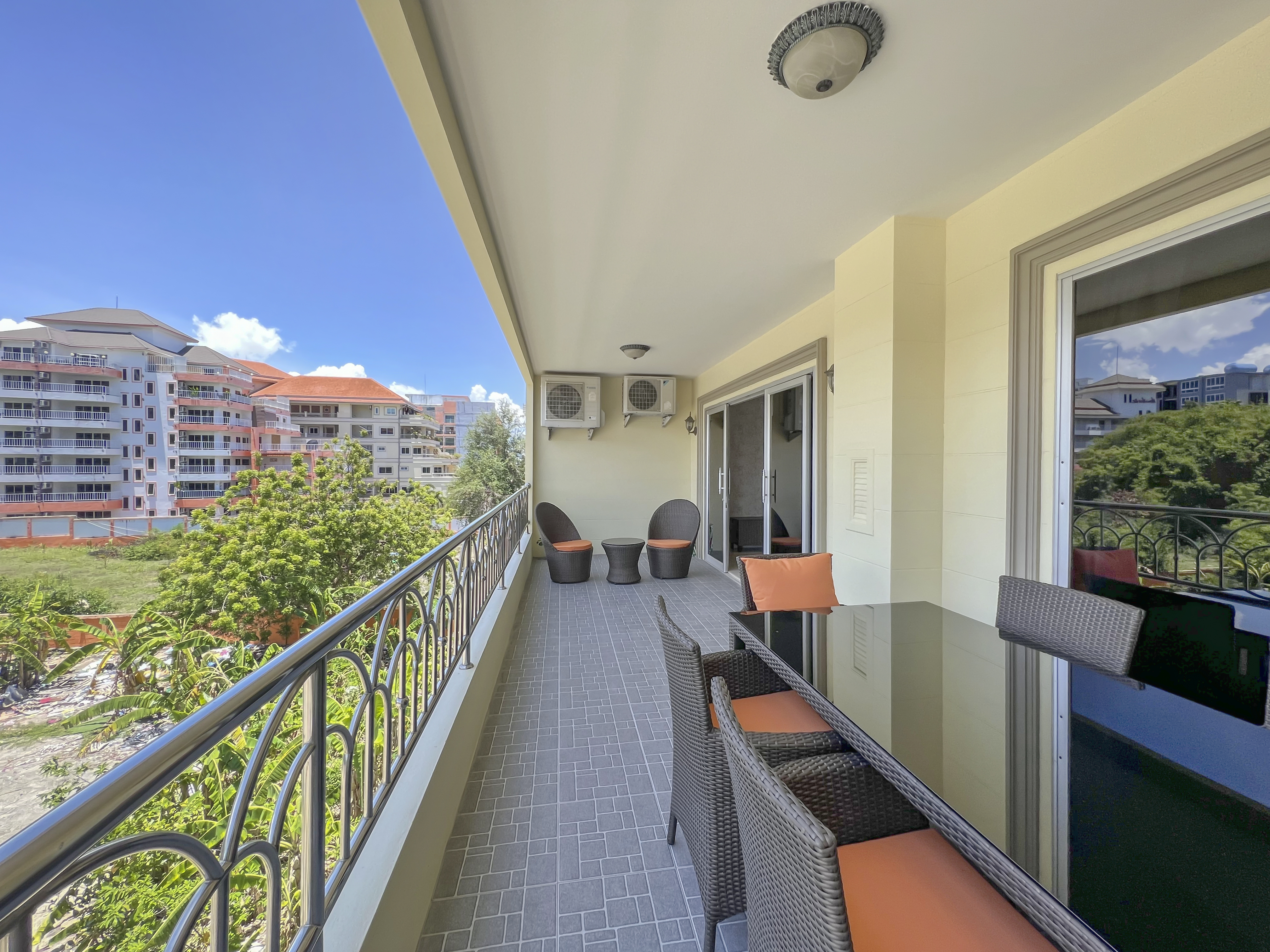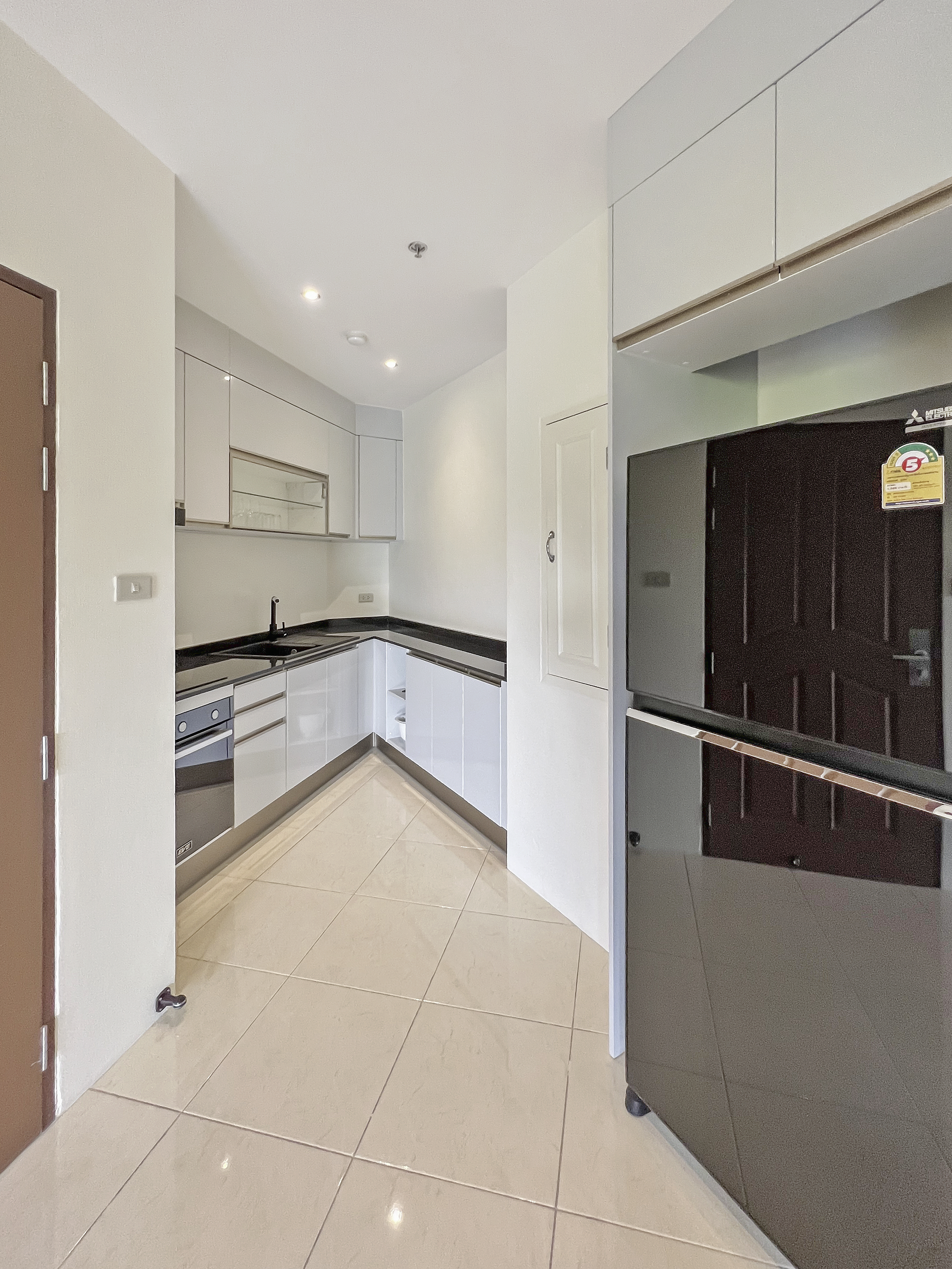 Fully renovated 2-bedroom condo for rent on Cozy Beach, Pratumnak. The condo has a spacious living area, a working area, and a very nice European kitchen with an oven, 2 nice bedrooms, and a large balcony with high-end furniture. Be the first to live in this condo that is available at 25,000 baht per month with a 1-year contract.
