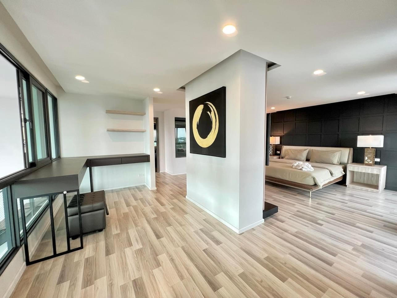 King size beds,3 smart TVs, 3 aircons, Big refrigerator ,Bathtubs Jacuzzi and washing machine.