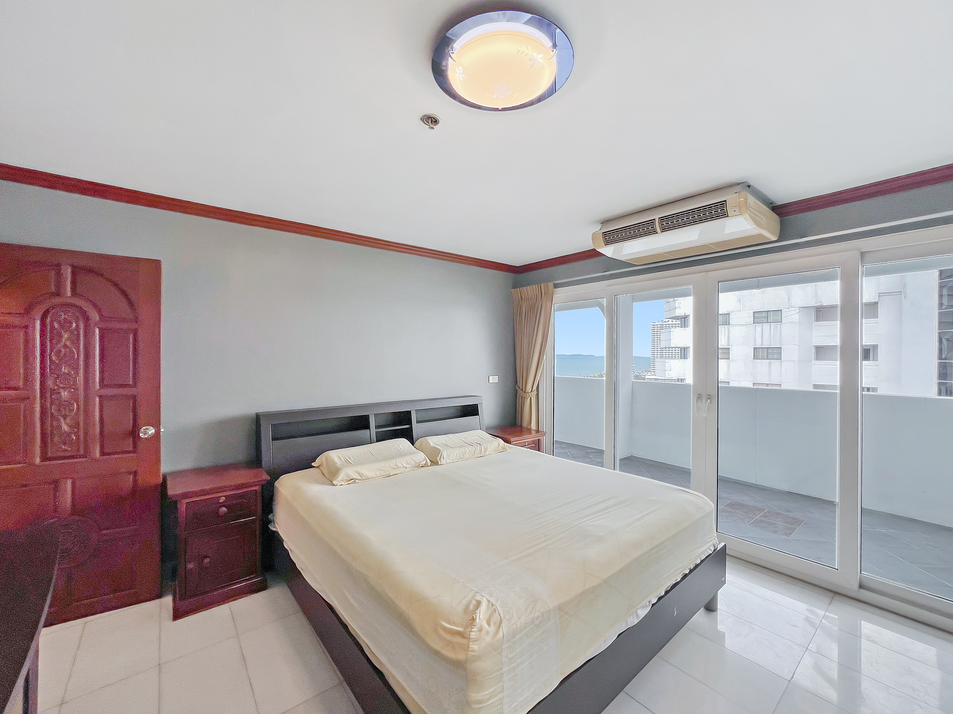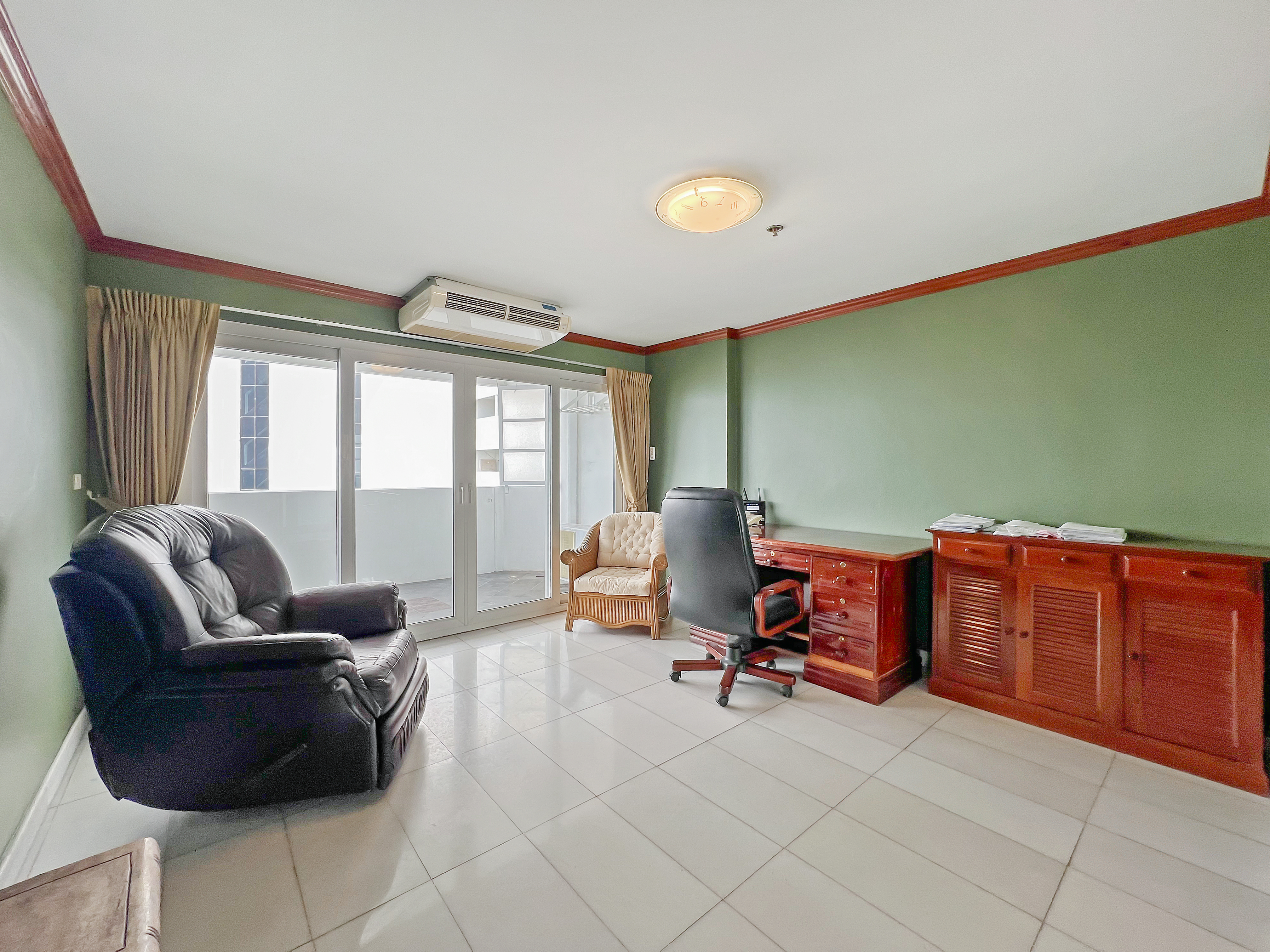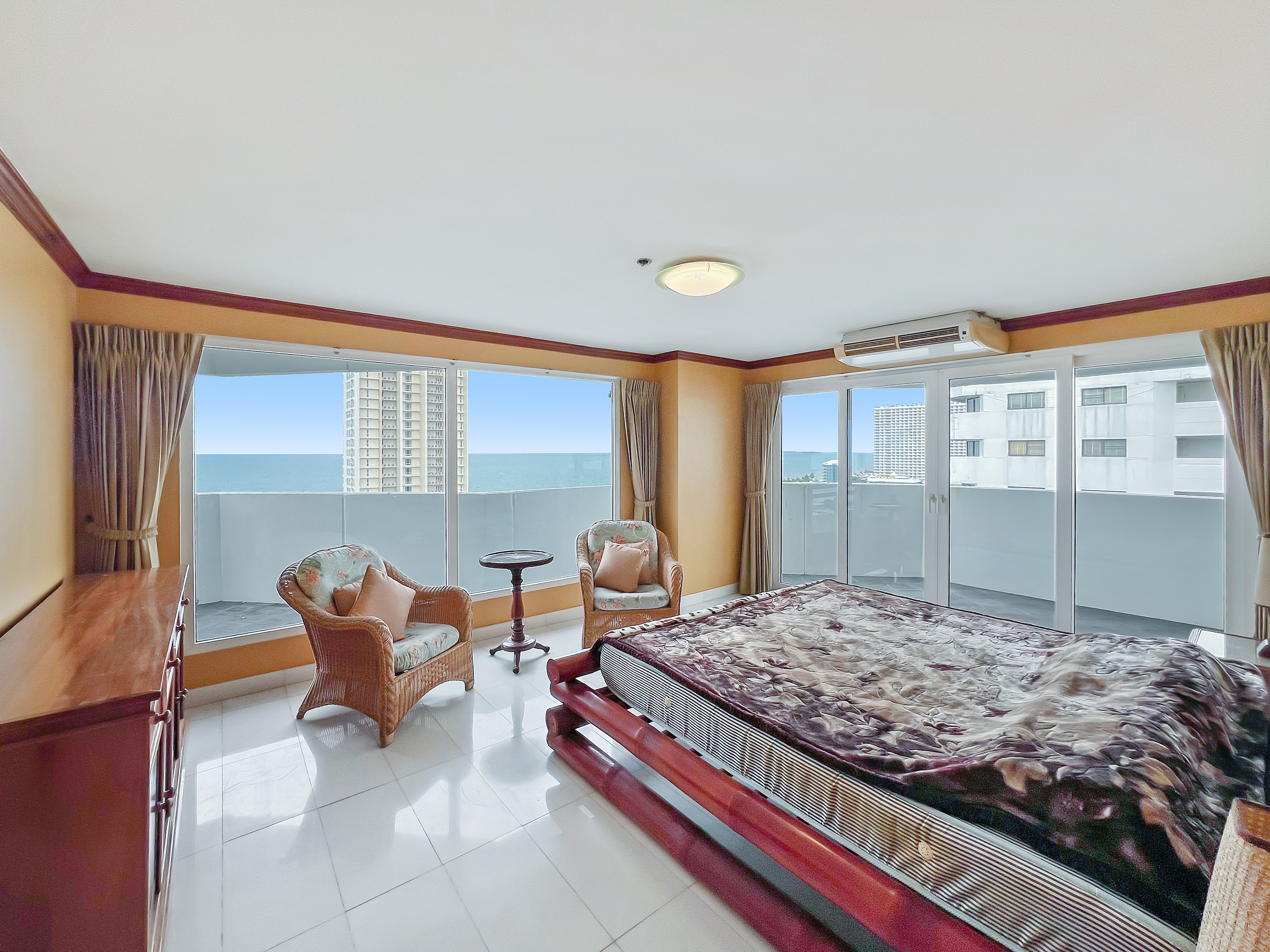 This spacious 273 sqm duplex condo is located in a quiet beachside development at the southern end of Jomtien Beach, just steps from the shoreline and close to restaurants, markets, and public transport.