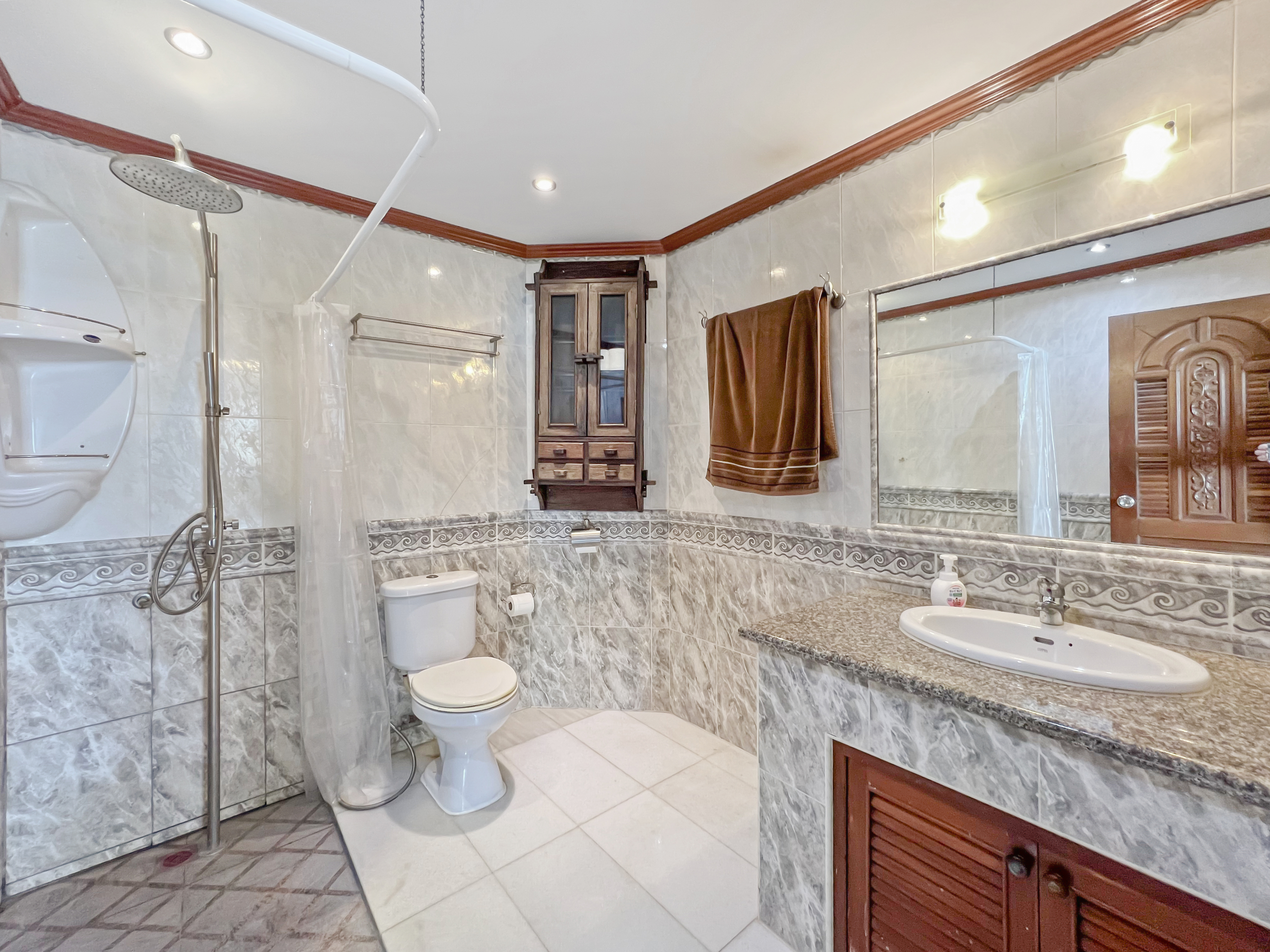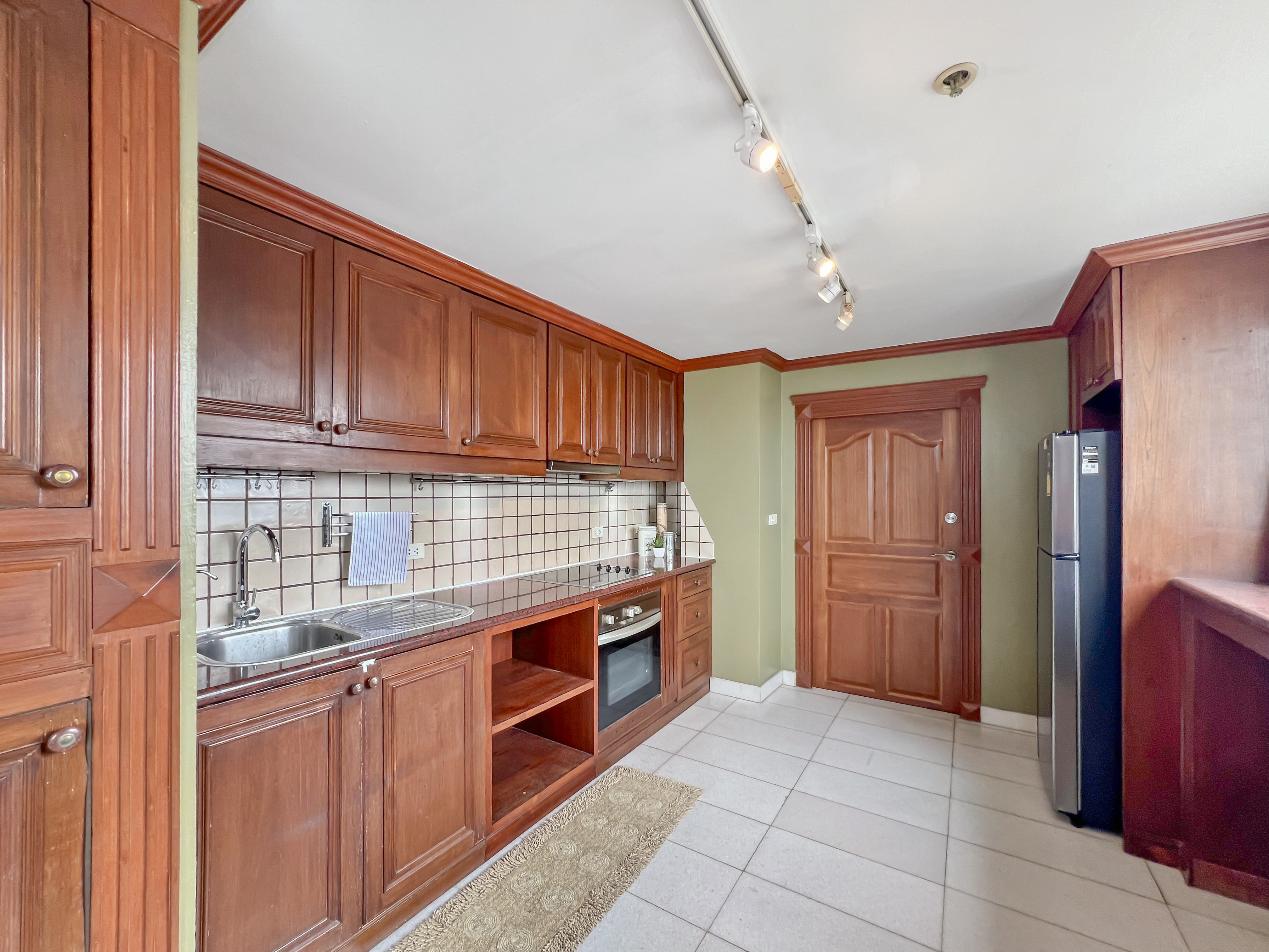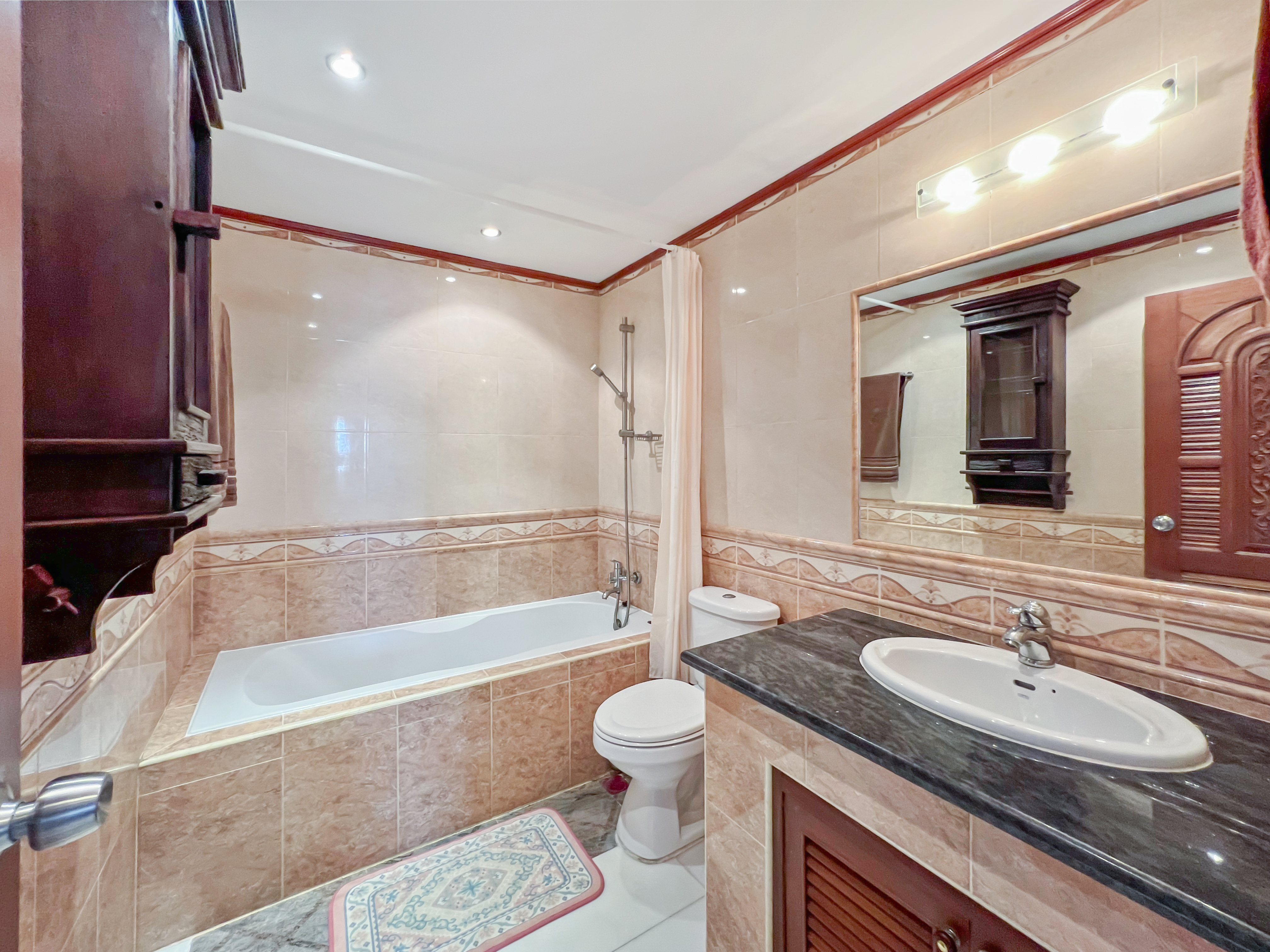 This spacious 273 sqm duplex condo is located in a quiet beachside development at the southern end of Jomtien Beach, just steps from the shoreline and close to restaurants, markets, and public transport.