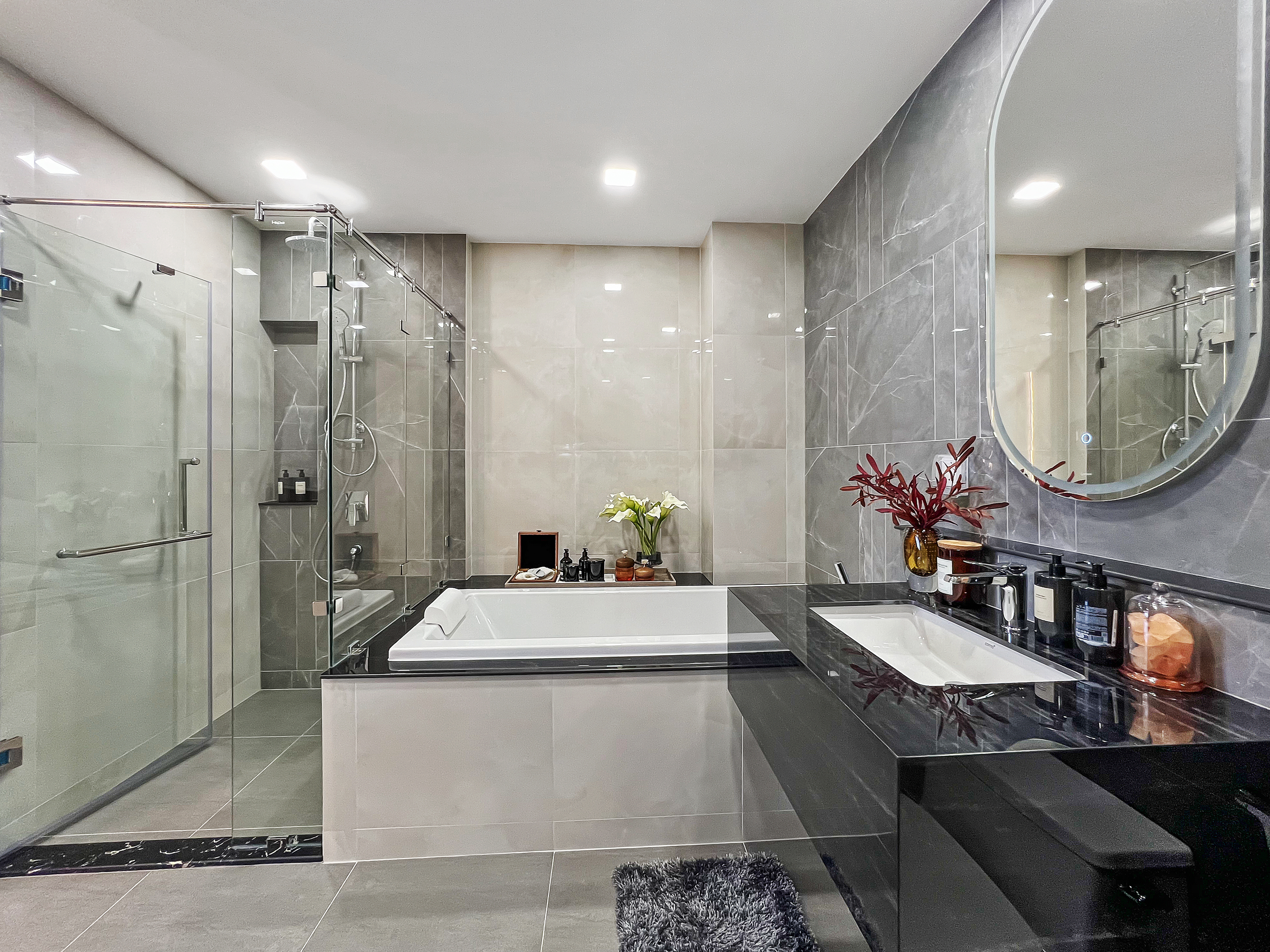 Note: Photos shown are of the show unit, showcasing the elegant finishes available at Aquarous.
