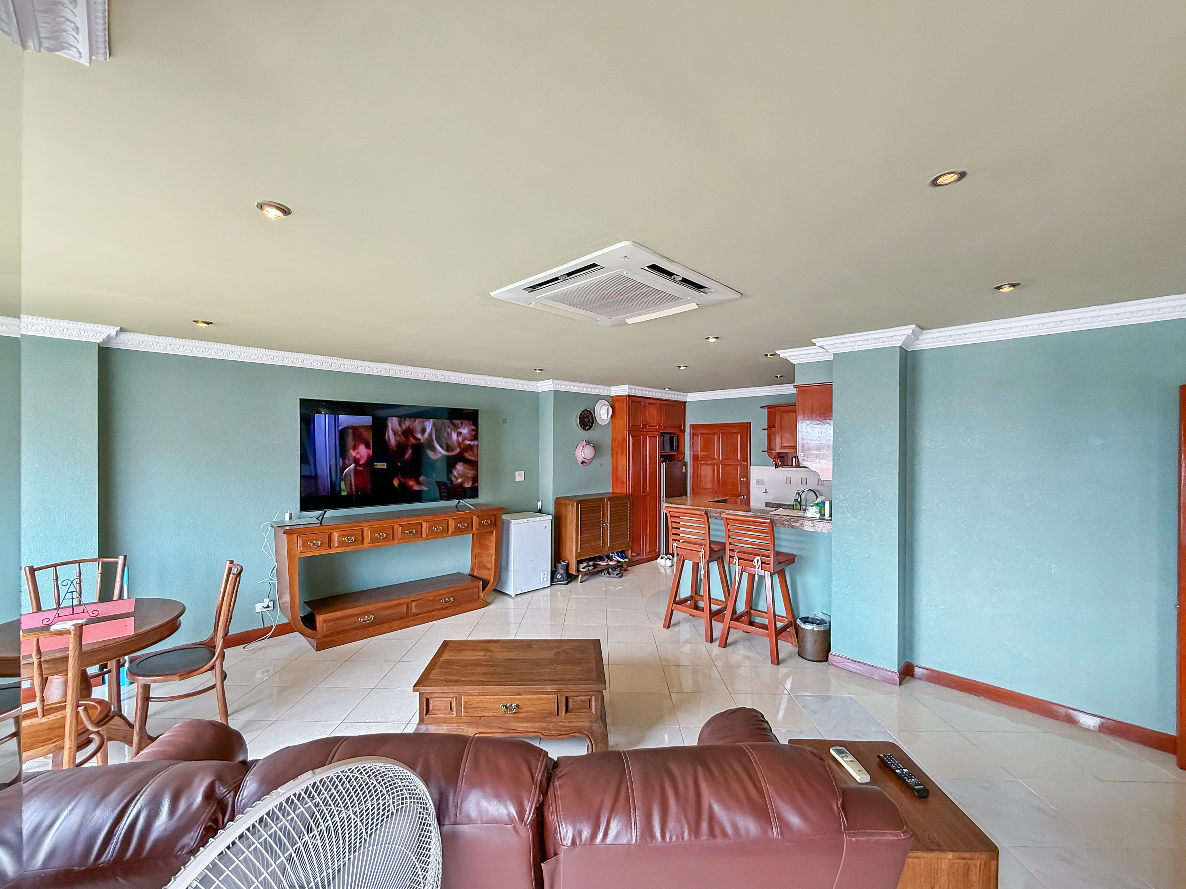 This rare, spacious studio unit in View Talay 1, Building B is created from two combined units, offering a total of 64 sqm of functional living space. Located on the 8th floor on the Pattaya side, the condo features a comfortable open layout and offers a partial sea view.