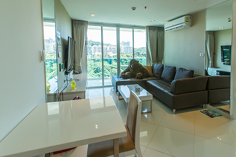 This 1-bedroom condo is available for rent in The View Condominium, positioned in the desirable Cozy Beach area of Pattaya. The condo is furnished with a high standard, featuring a leather sofa and large TVs in both the living room and bedroom. Notably, the unit is on the cooler side of the building, minimizing direct sunlight and heat from the intense Thai sun, which enhances comfort.