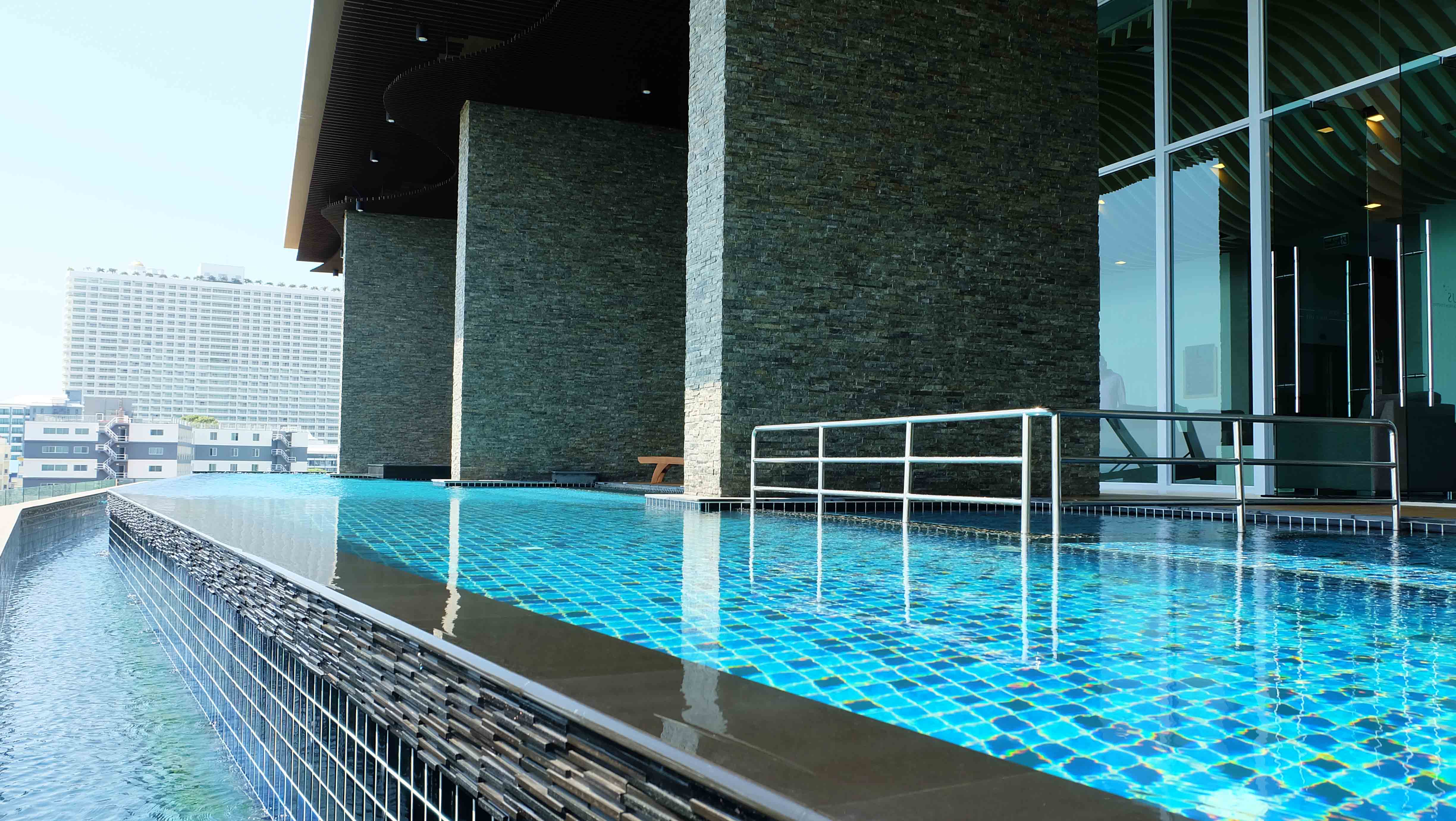 The facilities in Cetus include a very beautiful open lobby and lounge area from where is access to one of the two swimming pools and a large fitness center. From the lobby area, the pool, and the fitness center you also have panoramic ocean views. In front of the 5 story villa development, there also is a very large infinity-edge swimming pool. Some of the other facilities in Cetus include a sauna, pool bar, covered parking, and 24h security.