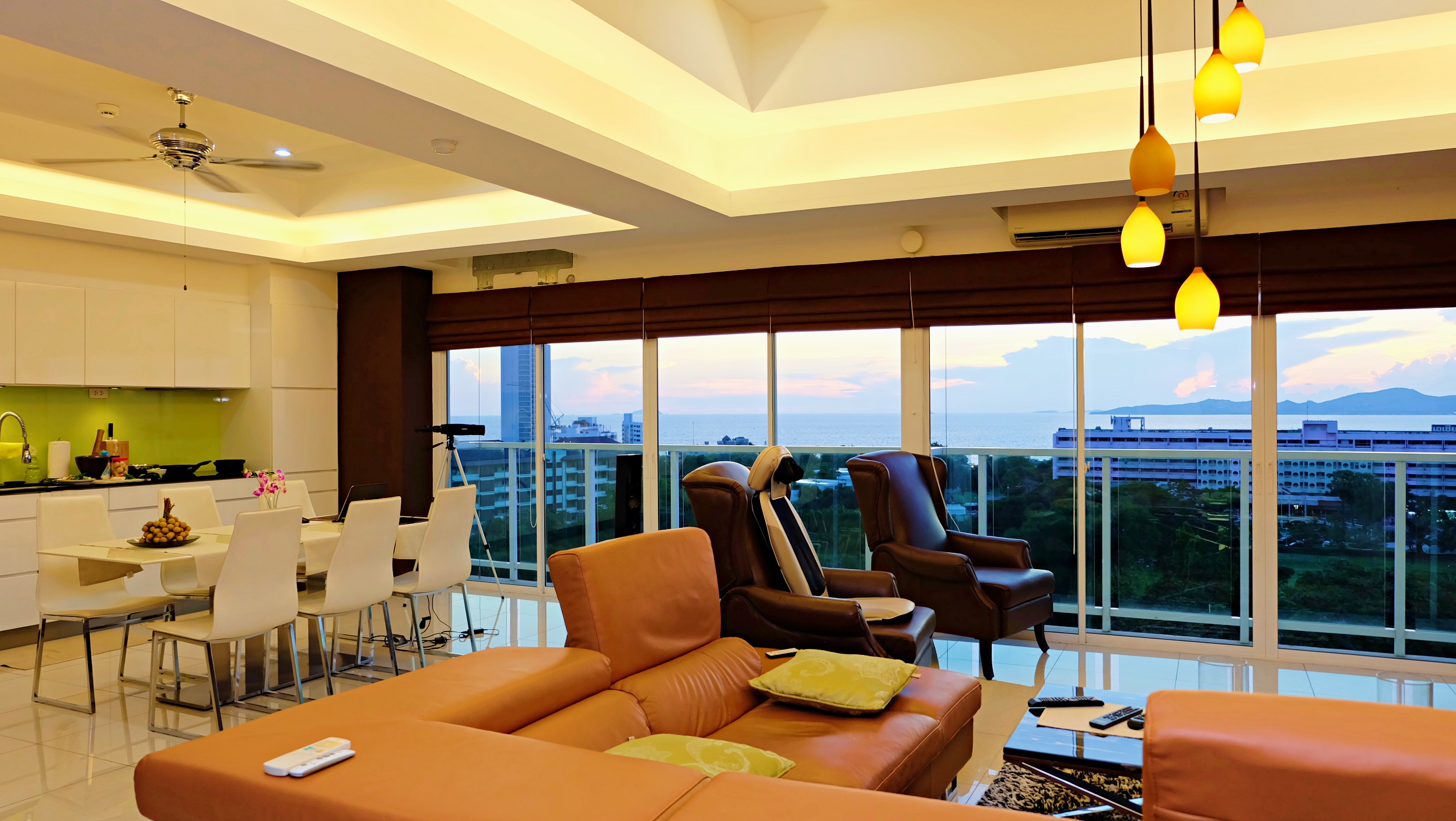 Unique Penthouse for sale on Pratumnak Hill with perfect ocean and Island Views. This Penthouse has been tastefully furnished and decorated. It has a large open plan solution with kitchen, dining, TV, and relaxation area and place for a home office. There is a large dedicated Sauna-area complete with showers and a relaxation area. All sauna materials have been imported from Finland. The condo has a high-end European kitchen, 2 bedrooms, and 2-bathrooms. The master suite has a bathroom en-suite and direct access to the sauna area.