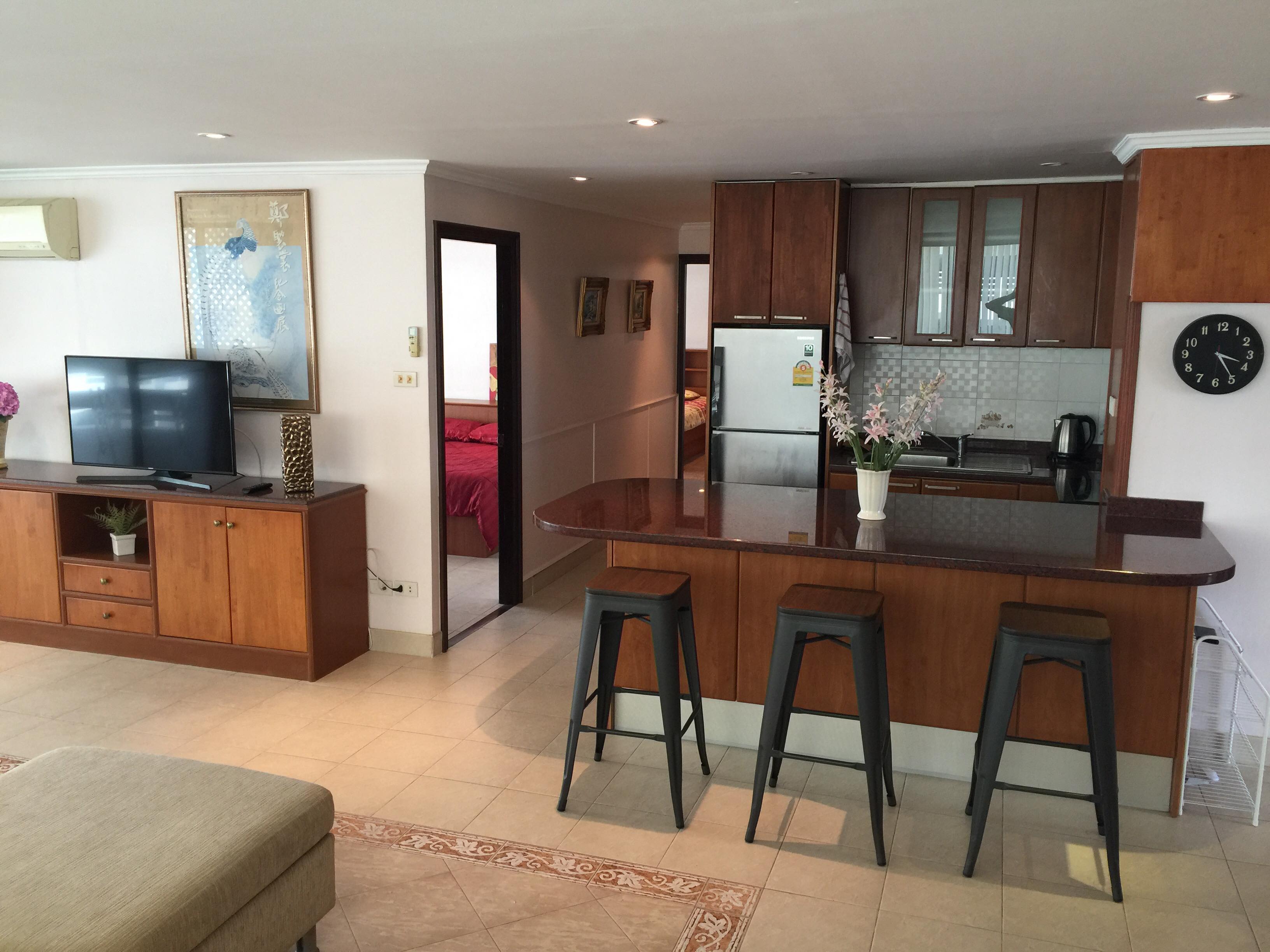 Grand Condotel is located just off Thappraya Road in Jomtien and has access to the beach, entertainment, shopping, and a wide array of Thai and international restaurants. Grand Condotel is located along the baht bus route and Jomtien beach is just 1 minute away and Pattaya is only a 5-10 minutes drive away.
