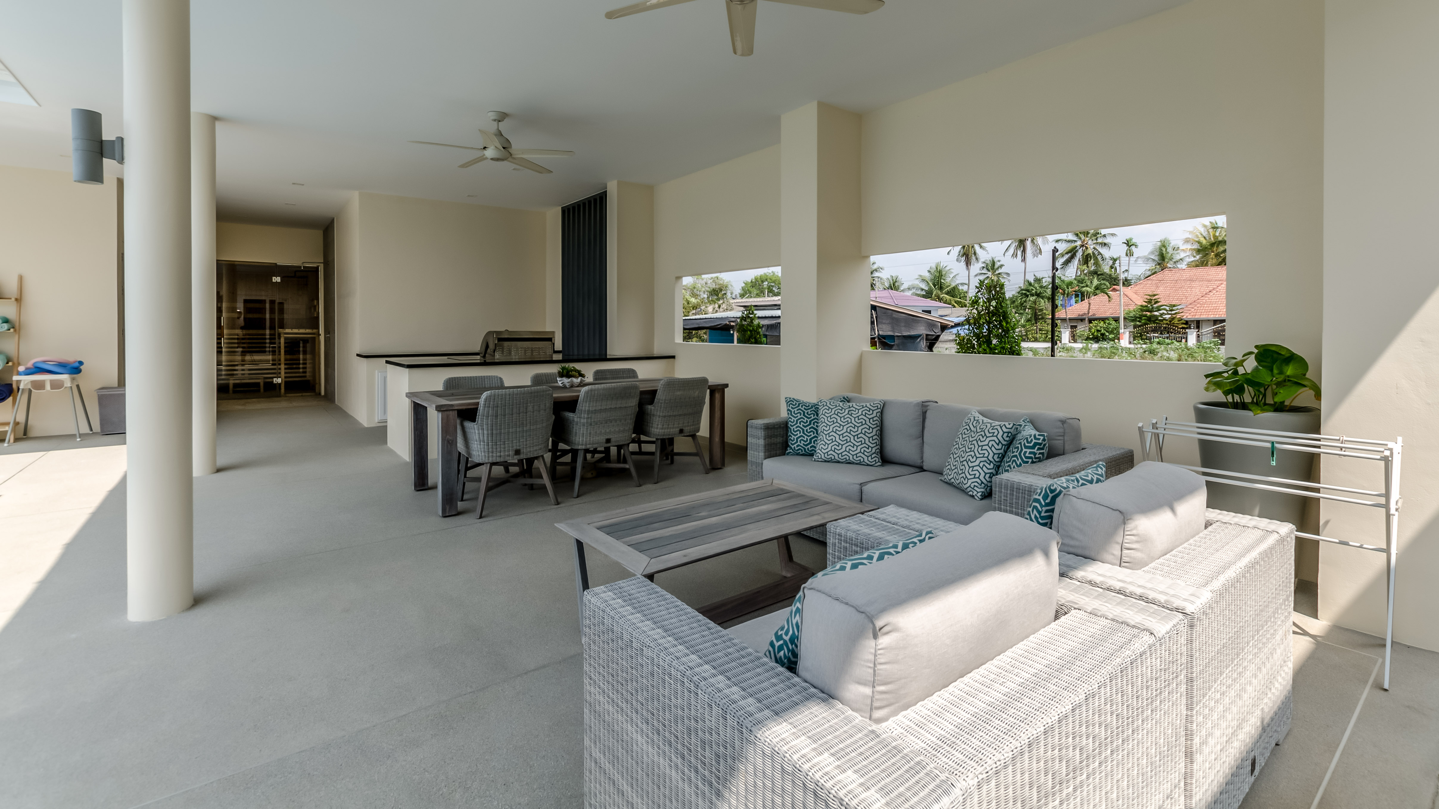 The main house has 4 bedrooms, 4 bathrooms, a large living room and a well-equipped European kitchen, and an outdoor Thai kitchen.