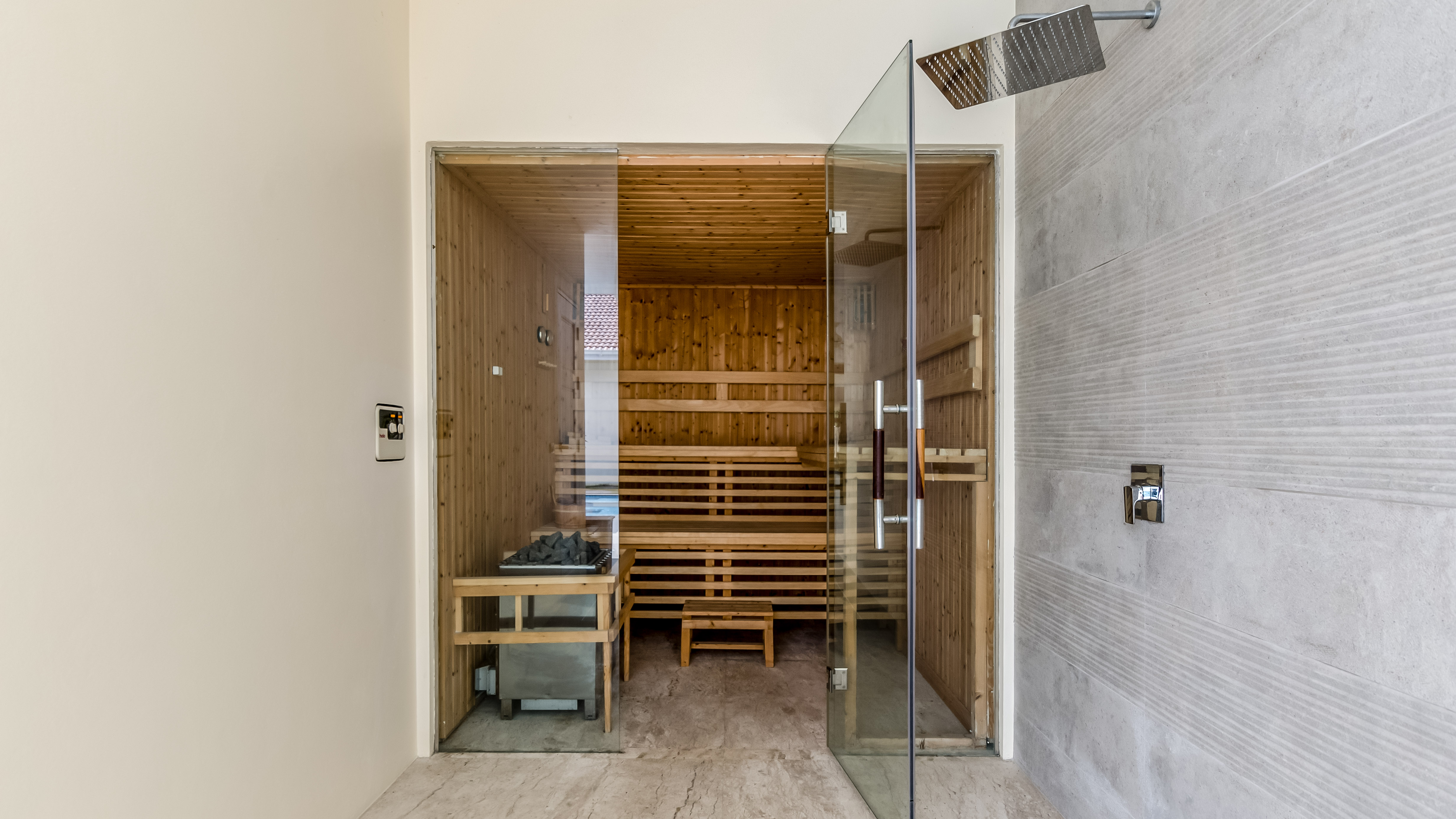The guest pool house has a 1 bedroom (currently used as a gym) ensuite bathroom that can also be accessed via the pool area and which also benefits from a bespoke sauna, large outdoor sitting, and dining area with kitchen and grill.