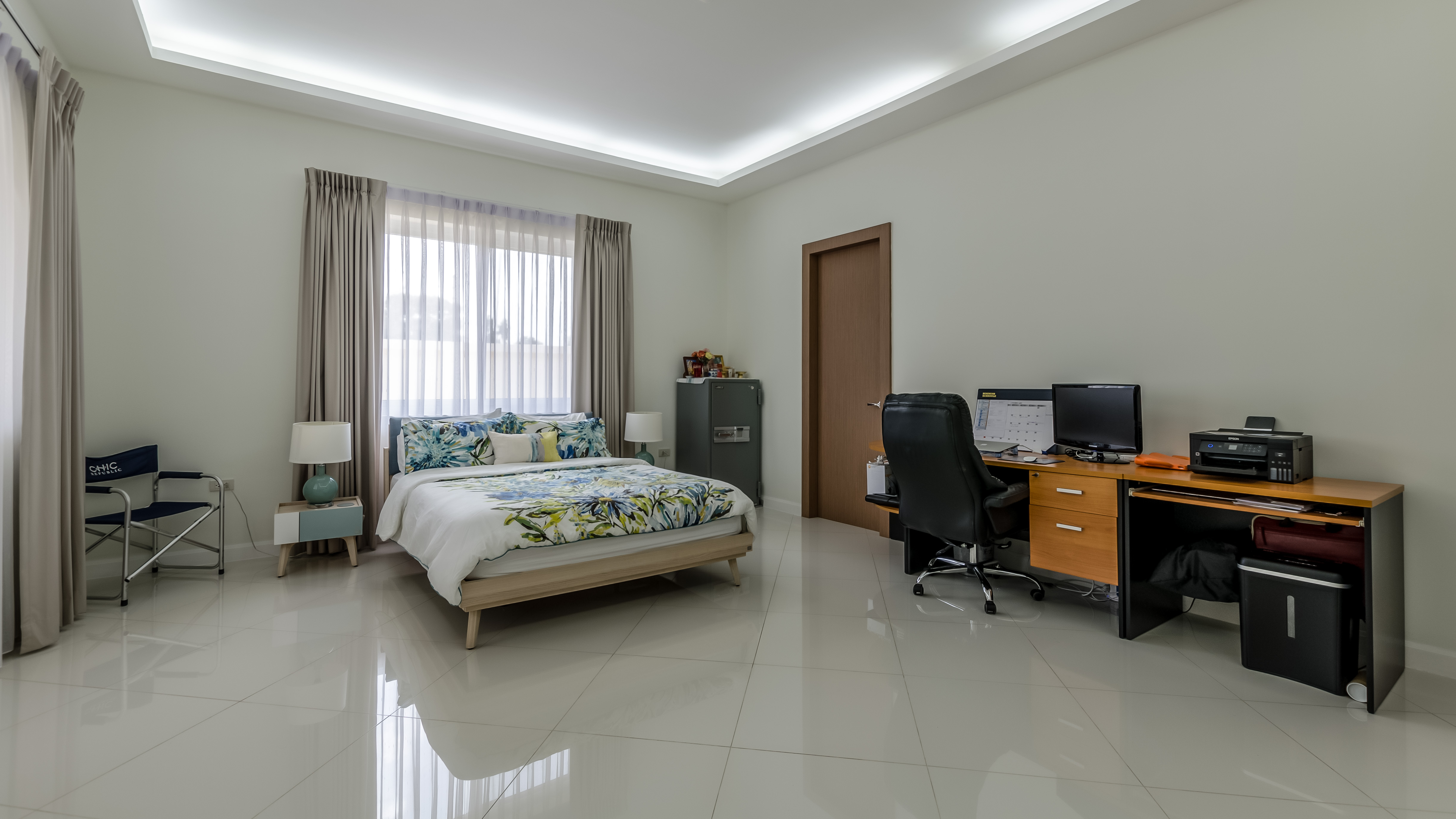The total living space is approximately 900 square meters. The large plot of land has been well cared for and has a 10 x 4-meter saltwater swimming pool, the garage can easily fit two cars internally and three on the covered drive. There is also a maid’s and driver’s room off the garage with a laundry room and bathroom.