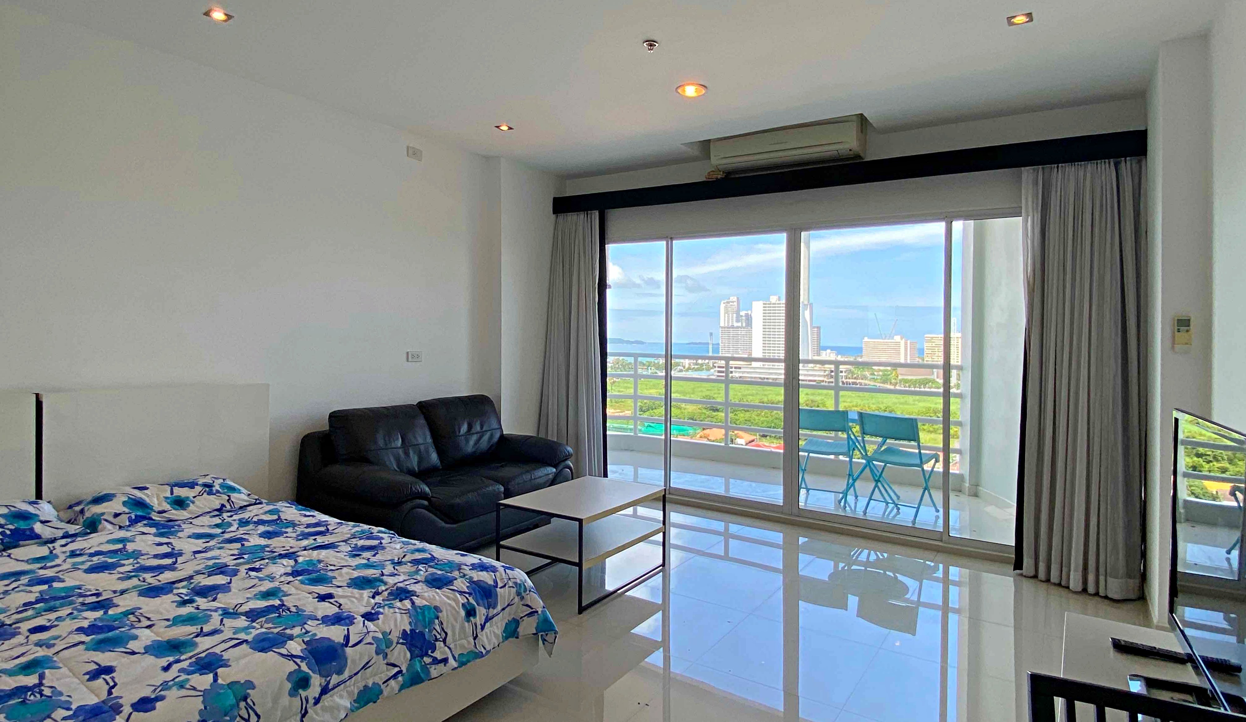 Oceanview studio unit for rent in View Talay 5D on the Pattaya side. This condo is situated on a higher floor on the cooler side of the building and offers beautiful sea and city views. This condo is offered for rent long term at 8,000 baht per month.