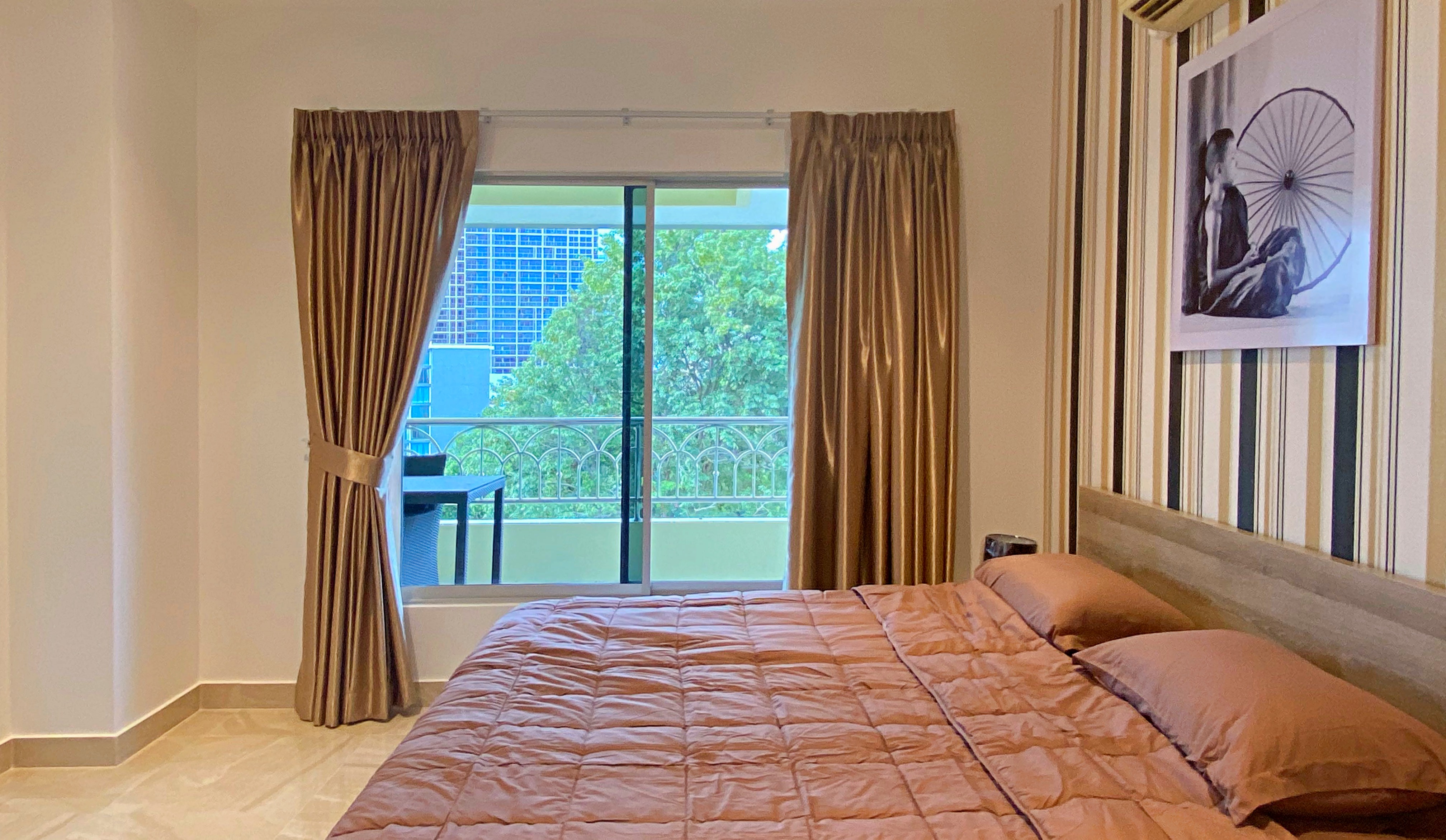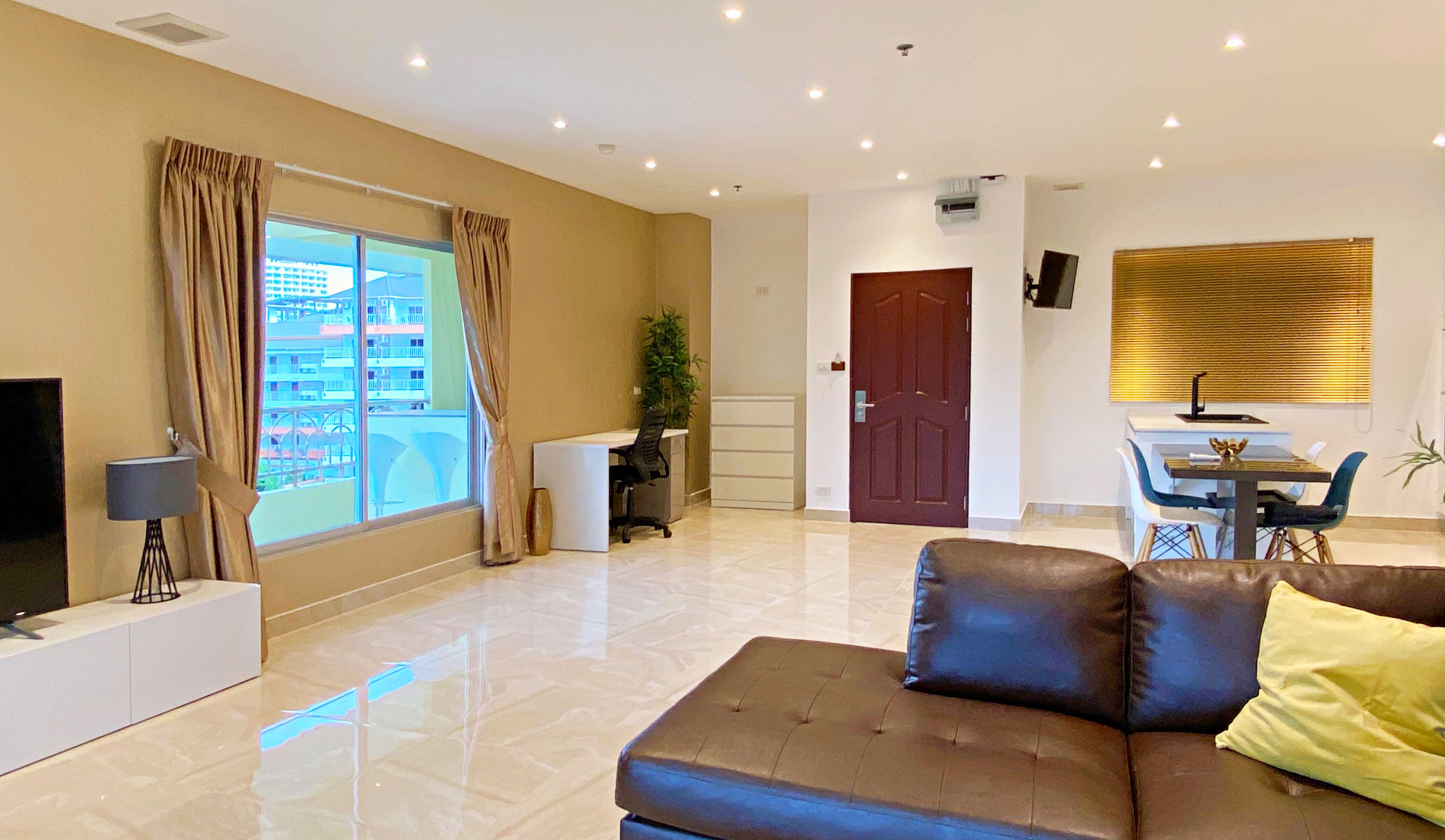 Very large 2-bedroom condo for rent on Cozy Beach in the Nordic Park Hill Condominium in Pattaya. This condo has been fully renovated and has a large open-plan living area and a large wrap-around balcony. This condo is offered for rent long term only.