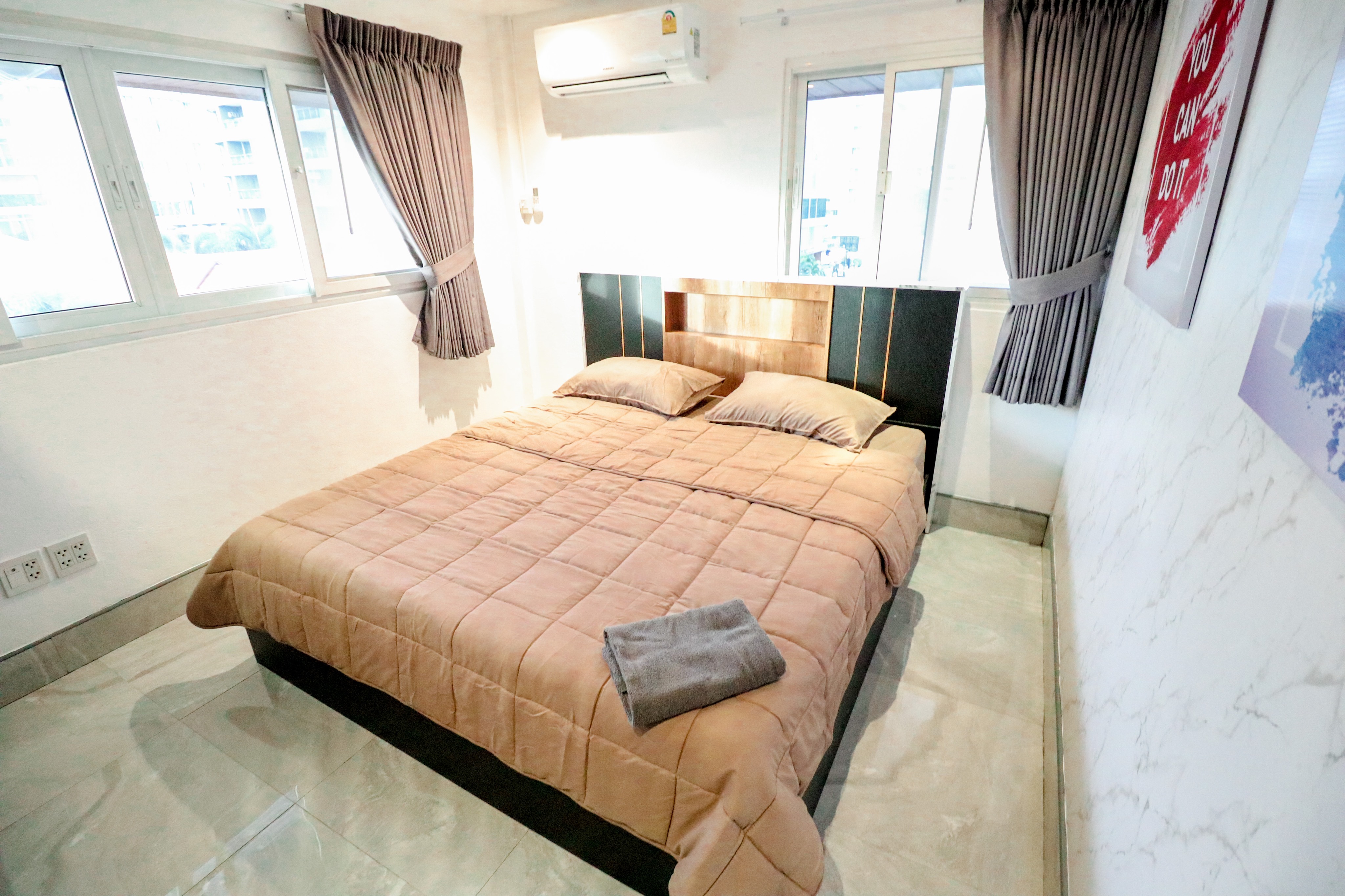 Stunning 2-bedroom duplex condo for rent on Pratumnak Hill. This beautiful condo has just been nicely renovated. On the lower floor, you have a large European kitchen, dining and TV area, and a bathroom. On the second floor, you have 2 large bedrooms and an office. This large condo is offered for rent at only 20,000 baht per month long-term.